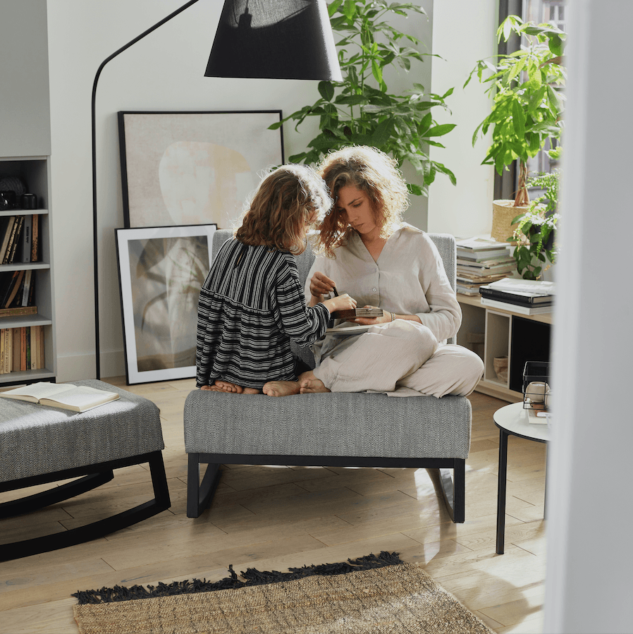 Do fotela Stan możemy dobrać również podnóżek z tej samej kolekcji. Taki duet wyniesie relaks na zupełnie nowy poziom. Podnóżek buja się na boki, co w połączeniu z kołyszącym się w tył i przód fotelem zapewnia pobudzenie neuronów. Razem tworzą wyjątkowo gościnny zestaw wypoczynkowy, doskonały na chwilę relaksu w pojedynkę, z dzieckiem lub ukochanym pupilem.