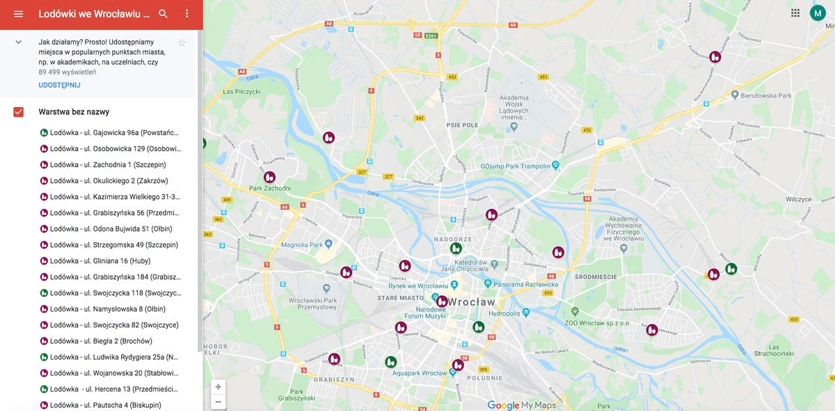 Lodówki społeczne możemy znaleźć w całej Polsce. Od Warszawy, przez Wrocław, aż po Bełchatów i Jelenią Górę. Ciągle powstają kolejne. Wszystkie funkcjonujące obecnie lodówki możemy znaleźć w mapie organizacji Weź Pomóż, dostępnej w aplikacji Weźpomóż Społeczne Lodówki.