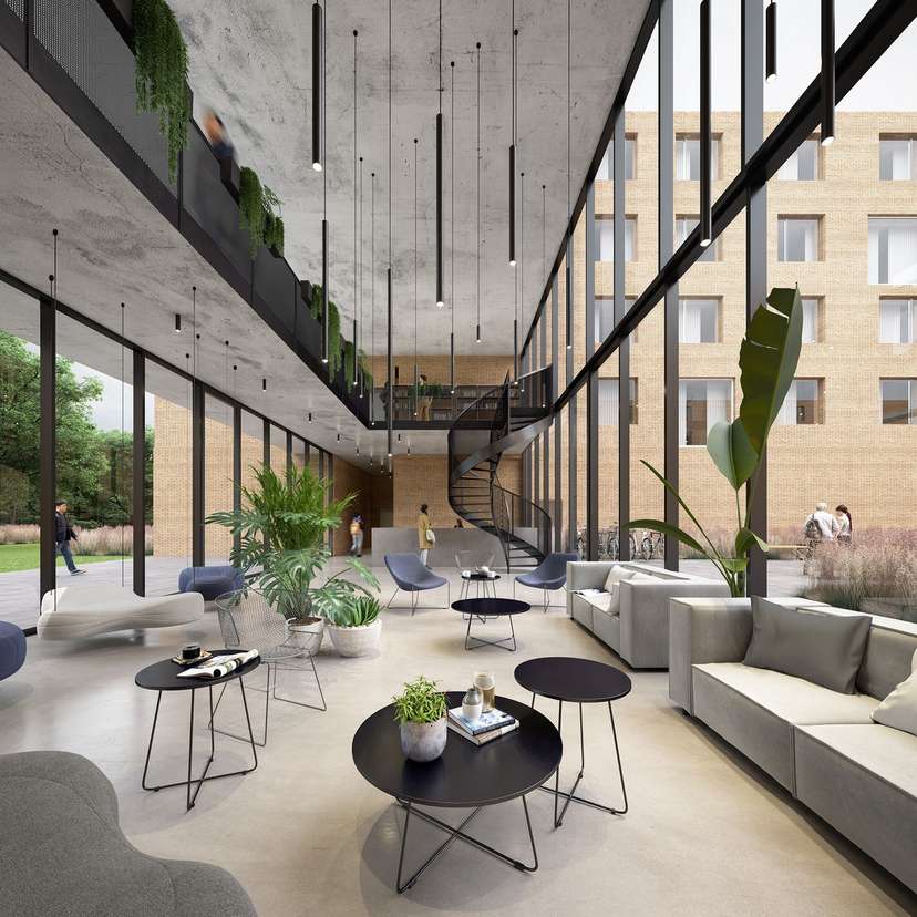 Na samym środku znajdzie się dziedziniec wewnętrzny, na którym studenci będą mogli integrować się i odpoczywać.