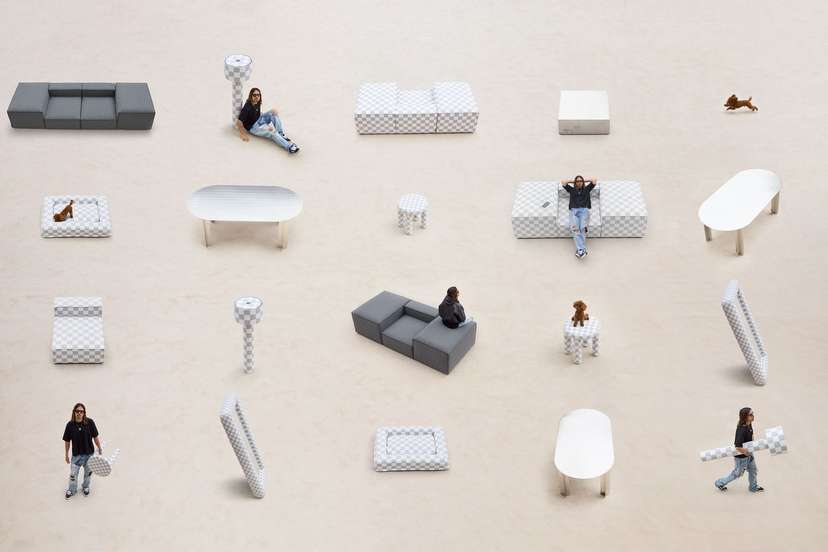 Ta szachownica to nie dekoracja, to manifest. Szaro-białe kwadraty stają się kodem genetycznym całej kolekcji, która rozpościera się między trzynastoma rodzinami produktów – od mebli po szkło, od tekstyliów po legowiska dla psów.