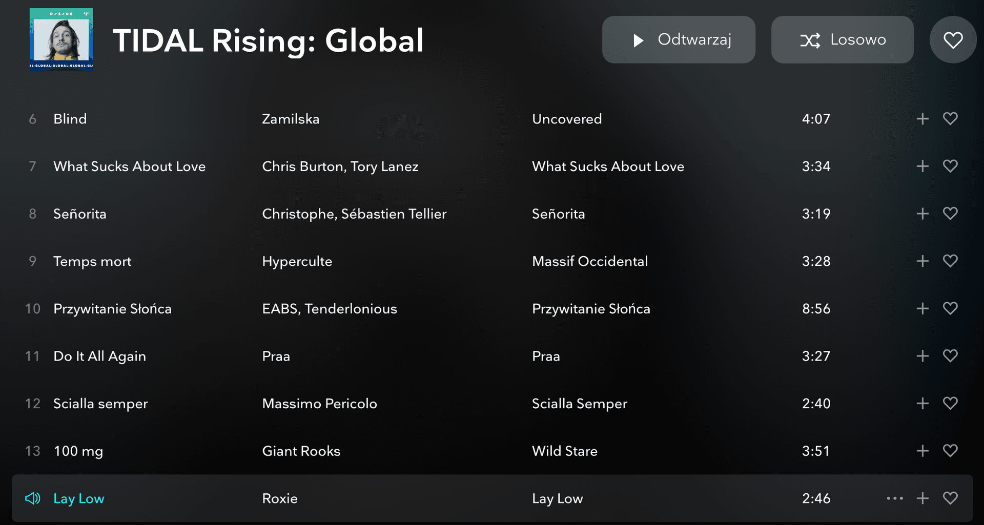 W materiale dowiadujemy się o "światowym uznaniu dla Roxie" (Roxie to nowy pseudonim artystyczny Roksany Węgiel). Prowadząca "Wiadomości" Danuta Holecka mówi w zapowiedzi wideo, że "gwiazda Telewizji Polskiej podbija świat". Na czym polega to podbijanie? Otóż piosenka "Lay Low" Roxie znalazła się na... playliście Tidala "najbardziej obiecujących wykonawców z - uwaga - całego świata", czyli Tidal Rising: Global. Rzekomo nie udało się to wcześniej żadnemu polskiemu artyście. Sprawdziliśmy te doniesienia i niestety, sporo się tu nie zgadza.