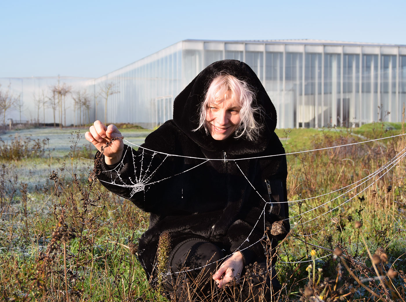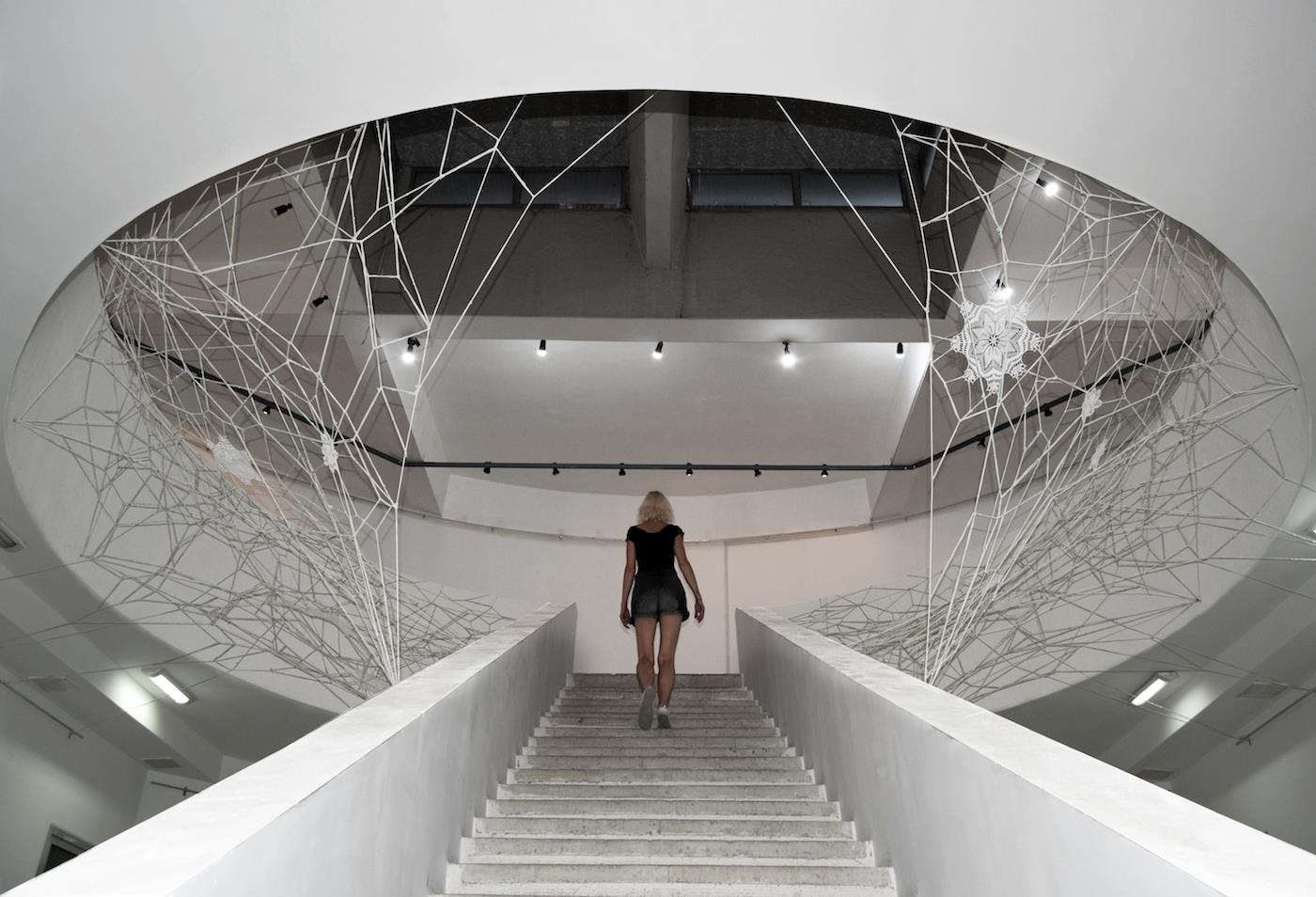 To mój najważniejszy projekt, bardzo kontemplacyjny i introspekcyjny. Od pięciu lat przez kilka miesięcy w roku godzinami lepię niewielkie porcelanowe płatki. Dziś jest ich ponad trzysta kilogramów. Są one w pewnym sensie materializacją moich myśli. Projekt pokazywałam kilkukrotnie w galeriach, a finałową wystawę planuję na rok 2042. Wtedy, po trzydziestu latach od rozpoczęcia pracy nad „Myślami”, będę miała ich półtorej tony. Widz będzie mógł ich dotknąć, zanurzając ręce w pojemnikach wypełnionych porcelanowymi płatkami, i słuchać, jak szeleszczą. Wierzę, że ten dźwięk oczyszcza umysł. Mimo, że „Myśli” to projekt czysto galeryjny, w tym przypadku również staram się nie tracić kontaktu z ulicą. Rok temu do współpracy zaprosiło mnie muzeum Urban Nation w Berlinie – zaproponowałam im właśnie „Myśli”. Przez trzy miesiące siedziałam na berlińskich chodnikach, patrzyłam na miasto, lepiłam i pozwalałam myślom płynąć swobodnie. Wszystkie są uchwycone i zamknięte w porcelanie.