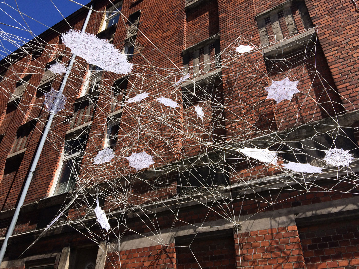 Biedronki były street artem dla dzieci. W tym samym czasie przyklejałam do murów pierwsze ceramiczne koronki, których zdjęcia rozprzestrzeniły się po internecie wiralowo. Wtedy to było coś nowego. Niewiele osób wykorzystuje ceramikę w street arcie, a jeśli już, to zwykle są to gotowe elementy czy płytki. Ja robię wszystko od podstaw, od bryłki gliny, jak w warsztacie ceramicznym.