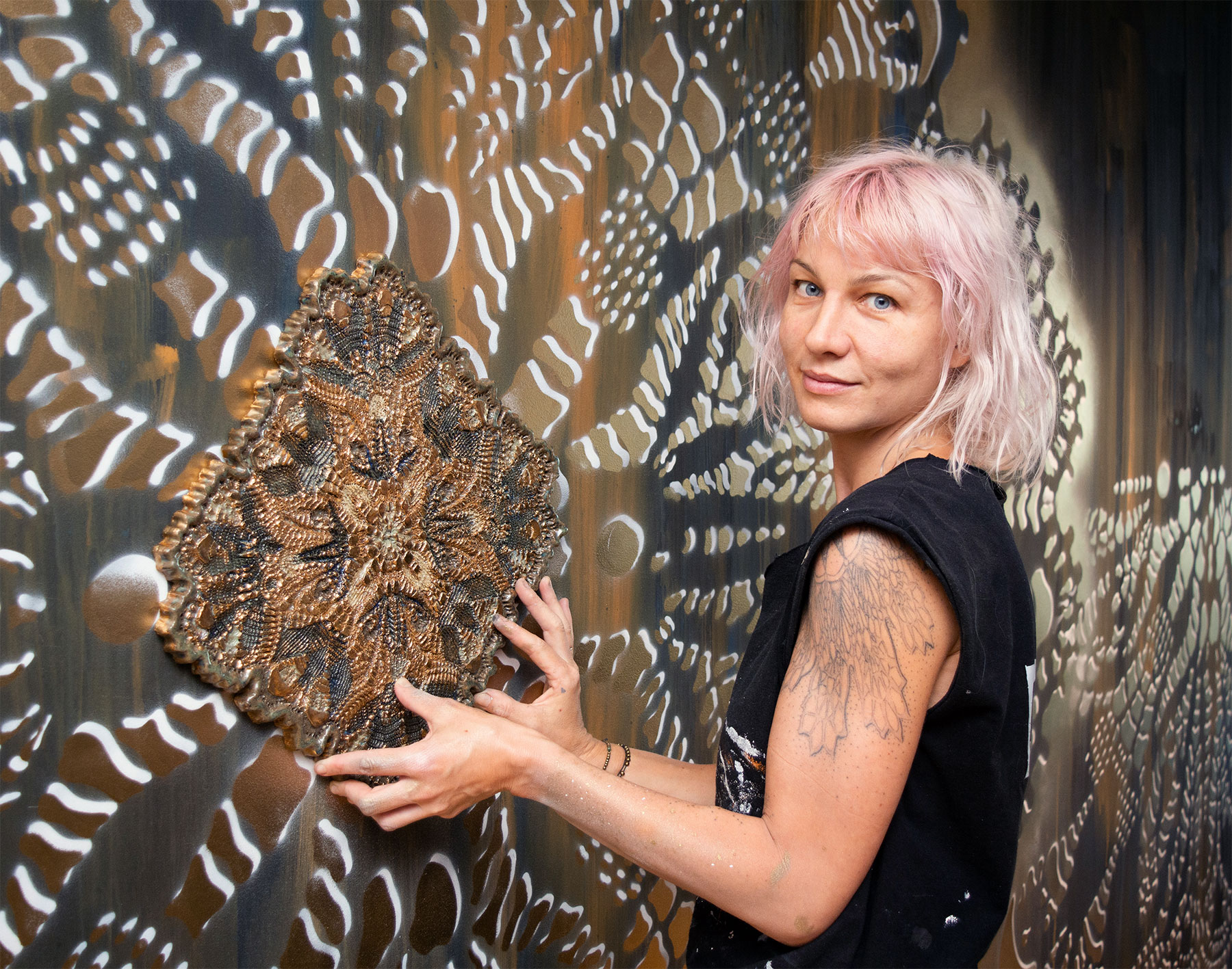 Maluję, odkąd pamiętam. Już w wieku pięciu lat marzyłam, by zostać „prawdziwą” artystką, podczas gdy moje koleżanki z przedszkola chciały być wróżkami czy piosenkarkami. Przez wiele lat tworzyłam ciemne, depresyjne obrazy olejne, aż w końcu zdałam sobie sprawę, że to ślepa uliczka. Na dwa lata odłożyłam pędzel, by w międzyczasie zainteresować się ceramiką. A ponieważ jestem nadproduktywna, w krótkim czasie cała rodzina i wszyscy znajomi mieli mnóstwo moich mis, miseczek, popielniczek, kubków i talerzy. Zrobiłam wszystko, co tylko można było zrobić z ceramiką użytkową, i poczułam, że zaczynam się nudzić. Pewnego razu podczas spaceru po parku na warszawskich Fortach Bema zobaczyłam betonowy słup, na którym „wyświetliła” mi się ceramiczna koronka, więc zrobiłam ją i tam przykleiłam. Tak to się zaczęło, to był 2009 rok.