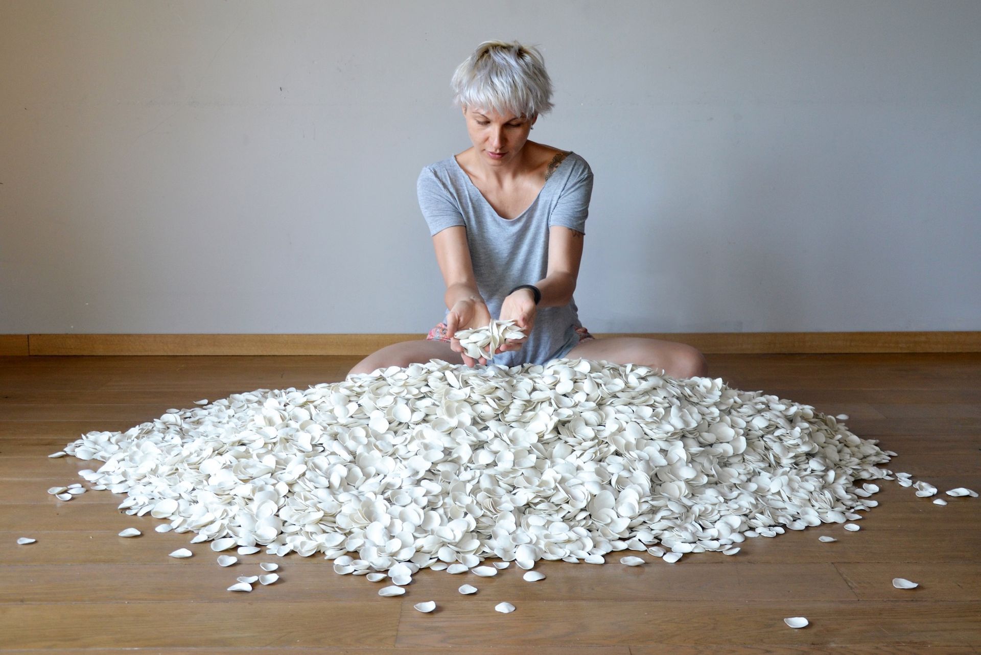 A jak określiłabyś projekt „Myśli”, w którym formujesz w palcach płatki z resztek gliny?