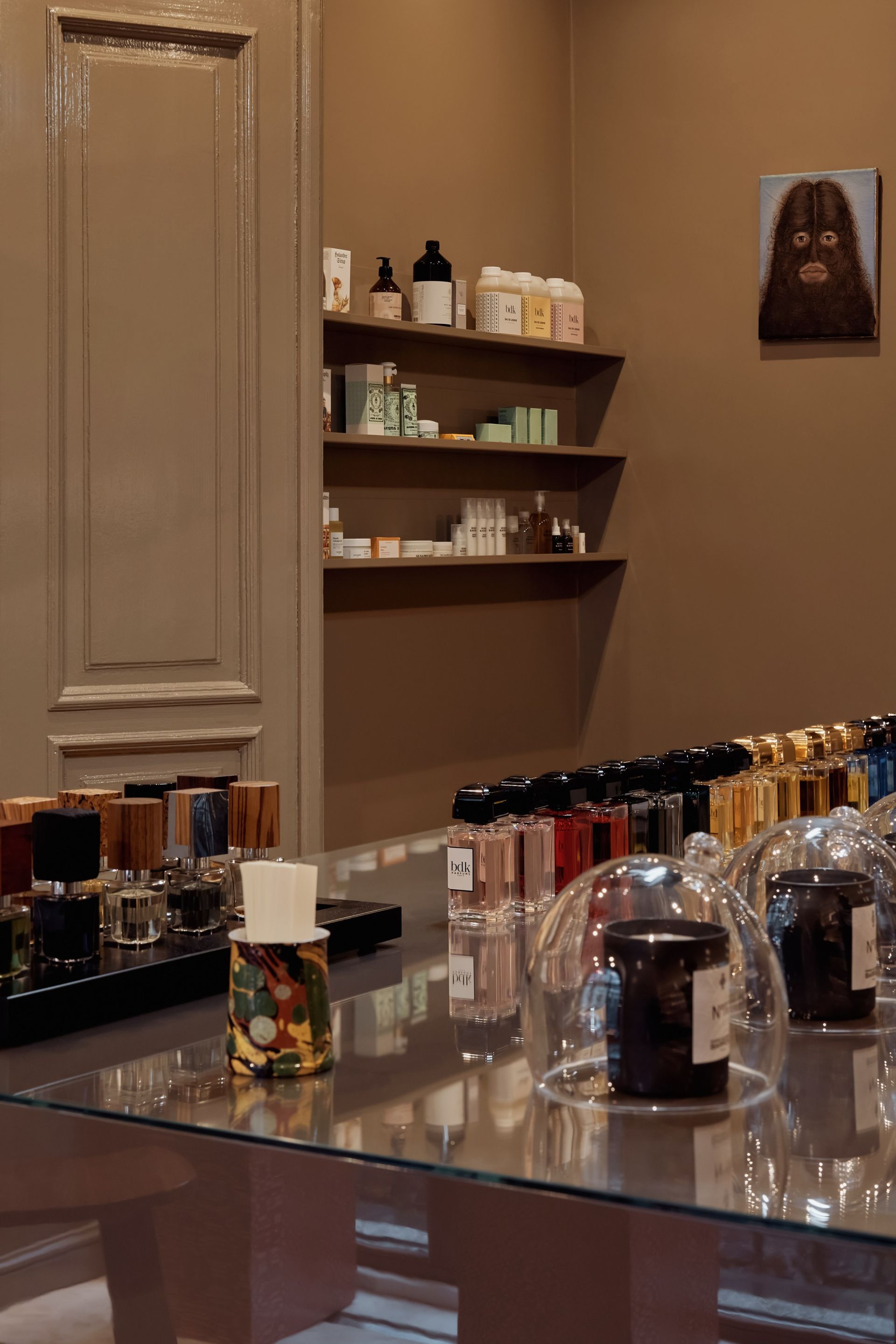 Na metalowych półkach i szklanym blacie w butiku przy Krowoderskiej stoją flakony perfum, dyfuzory i świece wyselekcjonowanych marek perfumiarskich z całego świata. Znajdziemy tu brandy dostępne w Polsce wyłącznie w Mood Scent Bar, jak np. Fueguia 1833, BDK Parfums, Marc-Antoine Barrois, Ella K, Rundholz Parfums, Atelier Materi czy 27 87 z Barcelony.