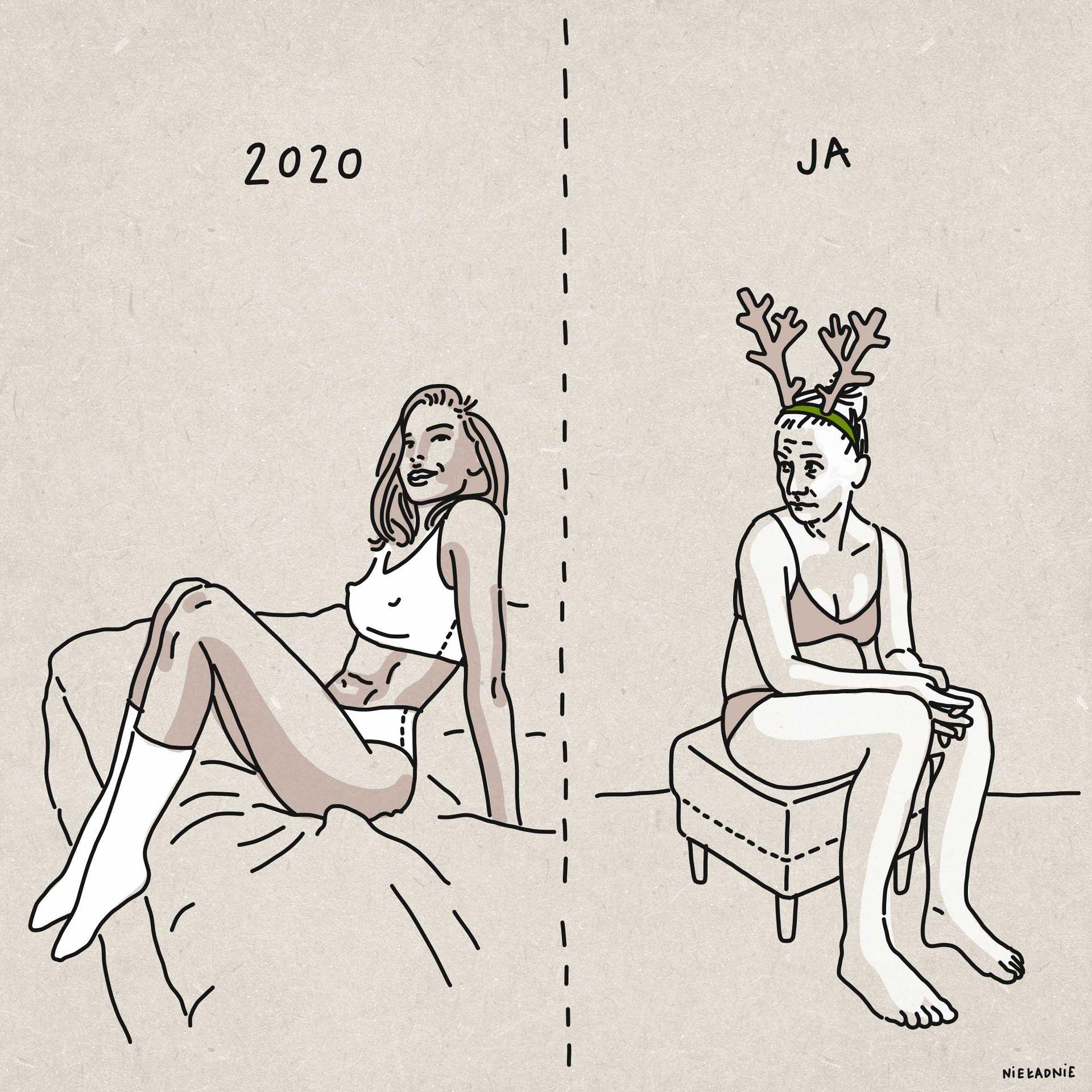 „Niemądre" chyba po to, aby zostawić sobie uchylone drzwi, dla lekkości formy i tematyki jaką się zajmuję, bo można mi zarzucić, że te rysunki to tylko głupoty o kobiecym świecie. No tak, głupoty, ale pod tymi głupotami jest właśnie nasza codzienność. Konwencja rysowania w sposób lekki o rzeczach błahych i niepoważnych bardzo mi odpowiada, jednak ja sama zawsze widzę w nich drugie dno. „Nieładne" natomiast, to nawiązanie do tytułu całego konceptu, taka życzliwa kontemplacja niedoskonałości. Bo kiedy prześledzimy sobie synonimy tego słowa, znajdziemy paletę wyrażeń związanych z adoracją brzydoty i nieudolności, a więc pewnej prawdy o nas samych, i właśnie to odbija się w moich rysunkach.