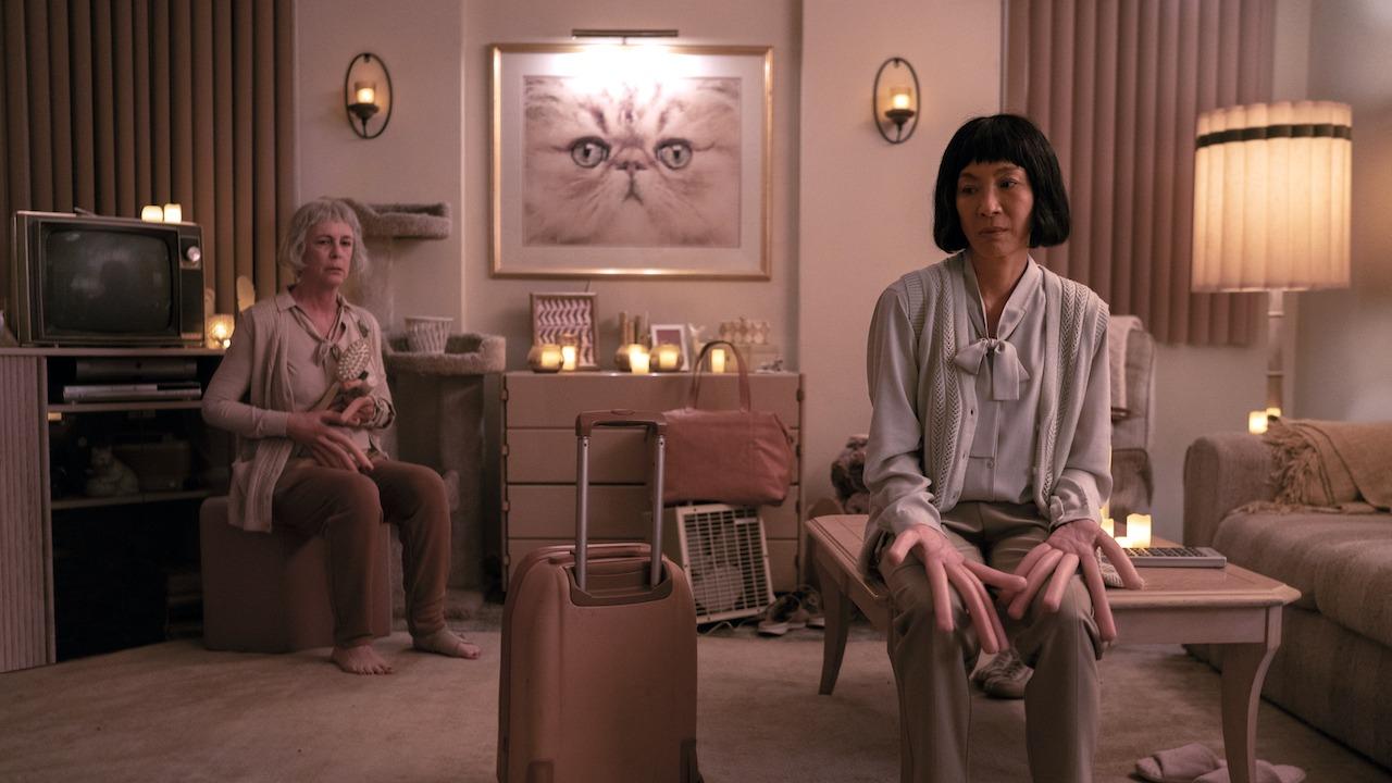 Nie mogę nie wspomnieć o obsadzie, bo dostajemy tutaj prawdziwy popis umiejętności aktorskich. Michelle Yeoh („Wyznania gejszy") gra Evelyn bez mrugnięcia okiem, zręcznie lawirując pomiędzy jej różnorakimi wcieleniami. Jest absolutnie fantastyczna i wypada przekonująco zarówno jako zahukana żona, jak i zabójcza wojowniczka. Partneruje jej Jonathan Ke Quan („Indiana Jones i Świątynia Zagłady") w roli irytującego i nieco naiwnego męża, który marzy o powrocie do czasów, gdy byli młodzi, zakochani i wolni od przytłaczającej rzeczywistości. W rolę ich córki (i nie tylko!) wciela się Stephanie Hsu („Wspaniała pani Maisel"), a nemezis z Urzędu Skarbowego gra sama Jamie Lee Curtis. Muszę jednak uprzedzić, że w takim wcieleniu jeszcze jej nie widzieliście...