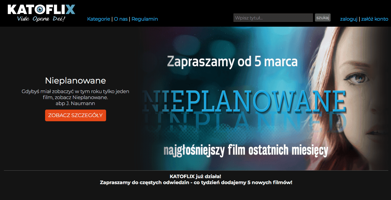 Jeden z filmów, który możemy znaleźć na Katoflixie, to "Nieplanowane". Jego polska premiera odbyła się jesienią 2019 roku i wzbudziła gniew wiele osób. Przed pokazem 6 listopada w Łodzi odbyła się demonstracja organizacji Dziewuchy Dziewuchom. Nad filmem patronat objął Episkopat Polski, produkcja otrzymała też nagrodę Prezydenta RP w kategorii „Film, który zmienia życie”.