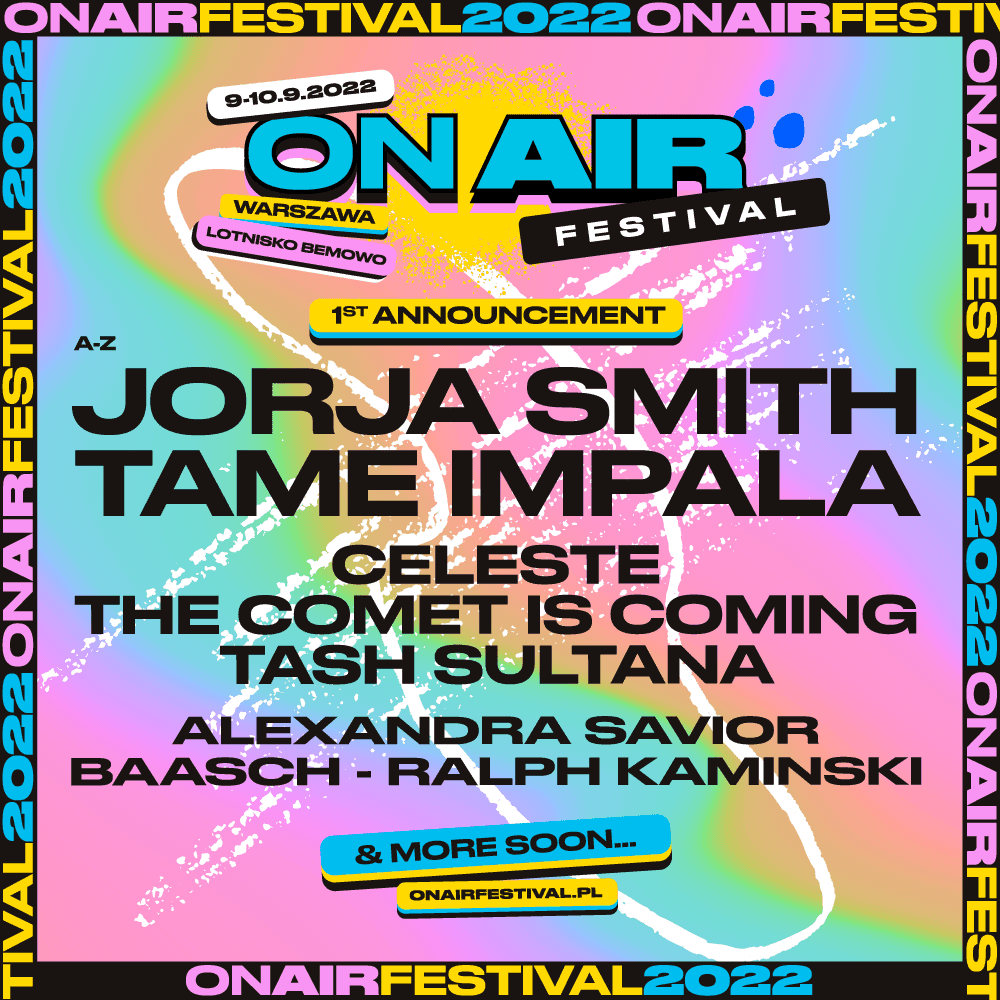 Tame Impala, Jorja Smith i Celeste to pierwsi headlinerzy nowego festiwalu ON AIR! To nowe wydarzenie muzyczne na pożegnanie lata odbędzie się między 9, a 10 września tego roku w Warszawie.