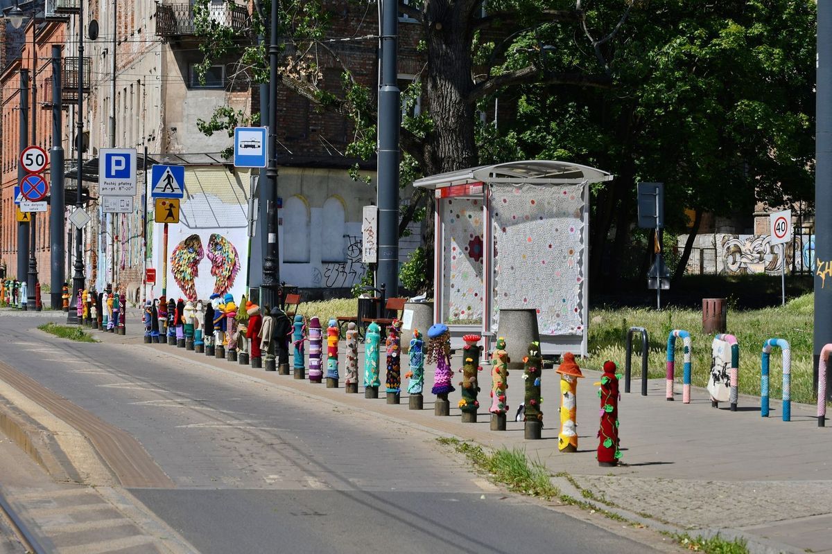 Ulica Kawęczyńska charakteryzuje się surowym, monumentalnym wyglądem. To tutaj wciąż można poczuć atmosferę przedwojennej Warszawy. Nic dziwnego, że mazowiecki konserwator zabytków wpisał ją do rejestru zabytków w 2021 roku. Yarn bombing, czyli „dzianinowe graffiti”, idealnie wpasowuje się w estetykę Kawęczyńskiej. Ociepla jej wizerunek, nadając niepowtarzalny, artystyczny charakter.