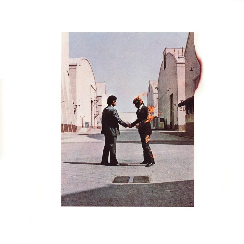 Okładka płyty „Wish You Were Here" zespołu Pink Floyd przedstawia dwóch mężczyzn podających sobie dłonie. Do zrobienia zdjęcia wynajęto kaskadera i zwyczajnie go podpalono, a cała scena rozgrywa się w centrum kreacji fikcyjnego świata, na tyłach studia Warner Bros. Album opowiada o samotności. Normalnie przestrzeń wokół budynków Warner Bros jest pełna ludzi – tutaj wieje pustką, co dodatkowo potęguje klimat wyobcowania bohaterów. A raczej bohatera, bo ten drugi jest jedynie wytworem jego wyobraźni. Tego typu dziwny, surrealistyczny nastrój jest cechą wszystkich projektów studia Hipgnosis.