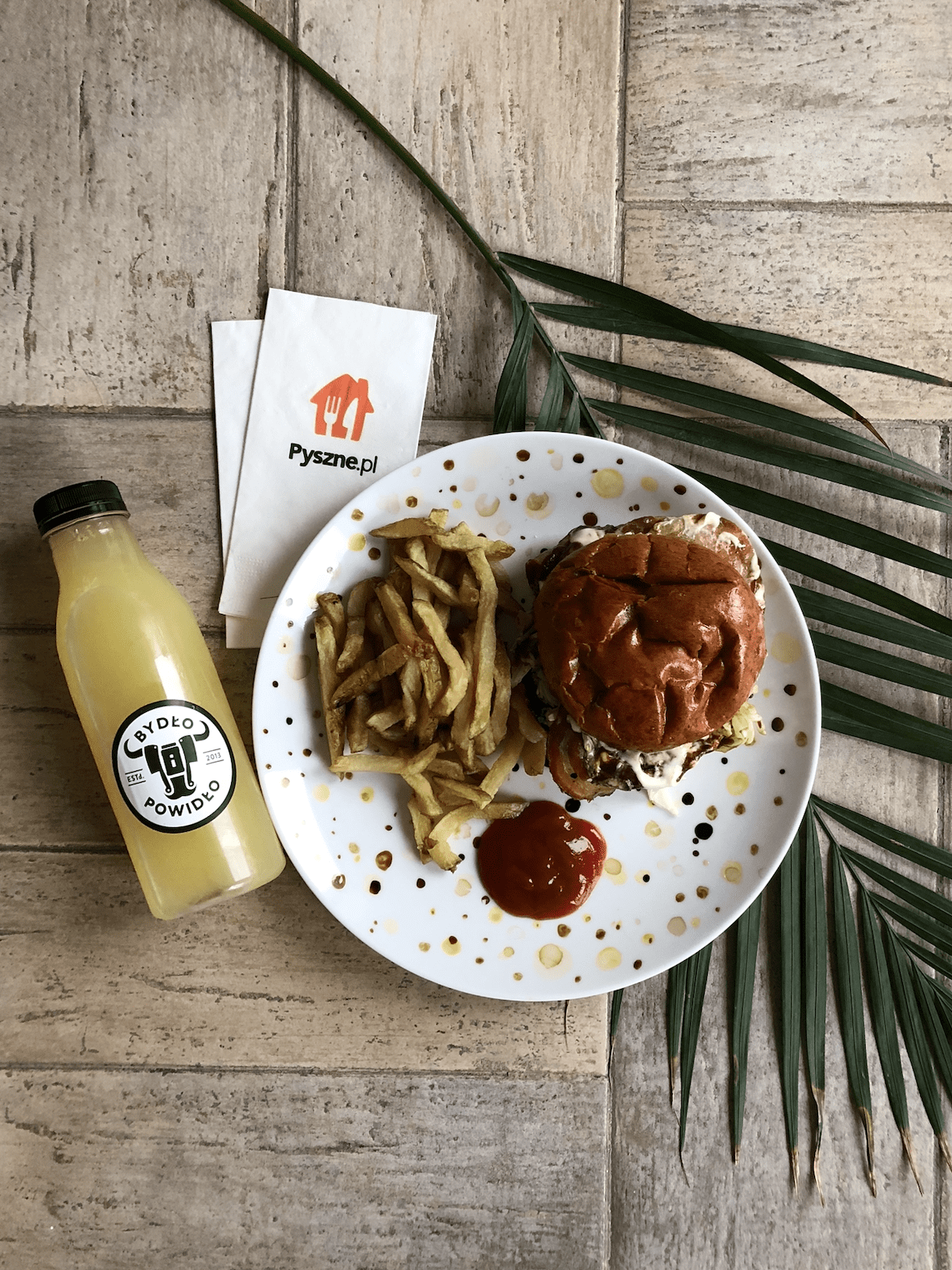 Jedzenie z wolskiej restauracjiBydło i Powidłozamówiliśmy do redakcji i zjedliśmy wspólnie. Każdy wziął to, co odpowiadało mu najbardziej i może dlatego, że jesteśmy dość różni – nic się nie powtórzyło. Dwie sałatki, dwa burgery (z których słynie ta restauracja) i oto mieliśmy redakcyjny lunch. Kiedy osoba dowożąca zamówienie zjawiła się po jakichś czterdziestu minutach, zebraliśmy się przy wspólnym stole i przetestowaliśmy, co Bydło i Powidło ma do zaoferowania.