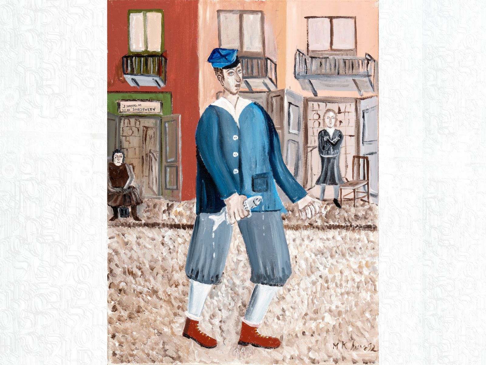 Majer Kirszenblat jest głównym bohaterem i przewodnikiem po wystawie. Jego malarstwo pozwala nam odkryć świat żydowskiego dziecka z przedwojennego sztetla, ale i zmierzyć się z trudną historią całej społeczności. Pozornie radosne obrazy nie są wolne od krytyki relacji społecznych i ekonomicznych realiów, w których dorastał. Prowokują również pytania o to, co stało się z żydowskim światem.