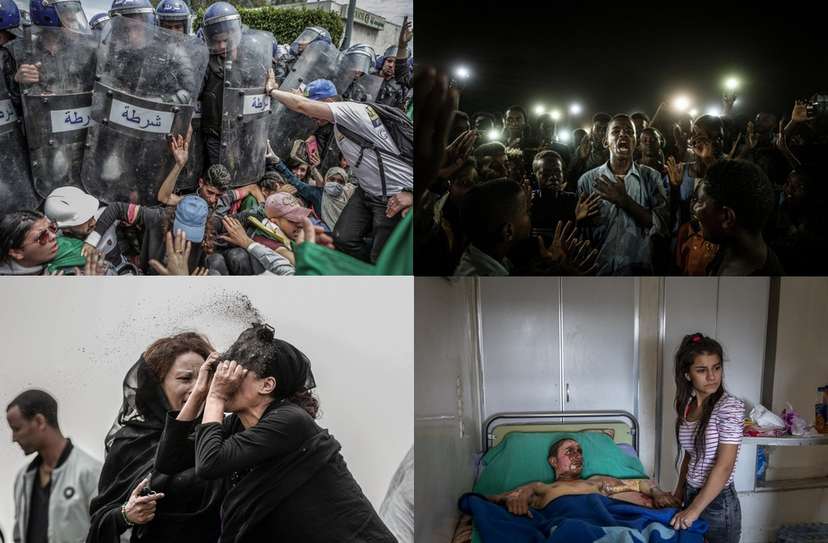 Zdjęcie przedstawia konfrontację studentów z policją podczas anty-rządowej manifestacji w Algierze 21 maja 2019 roku.