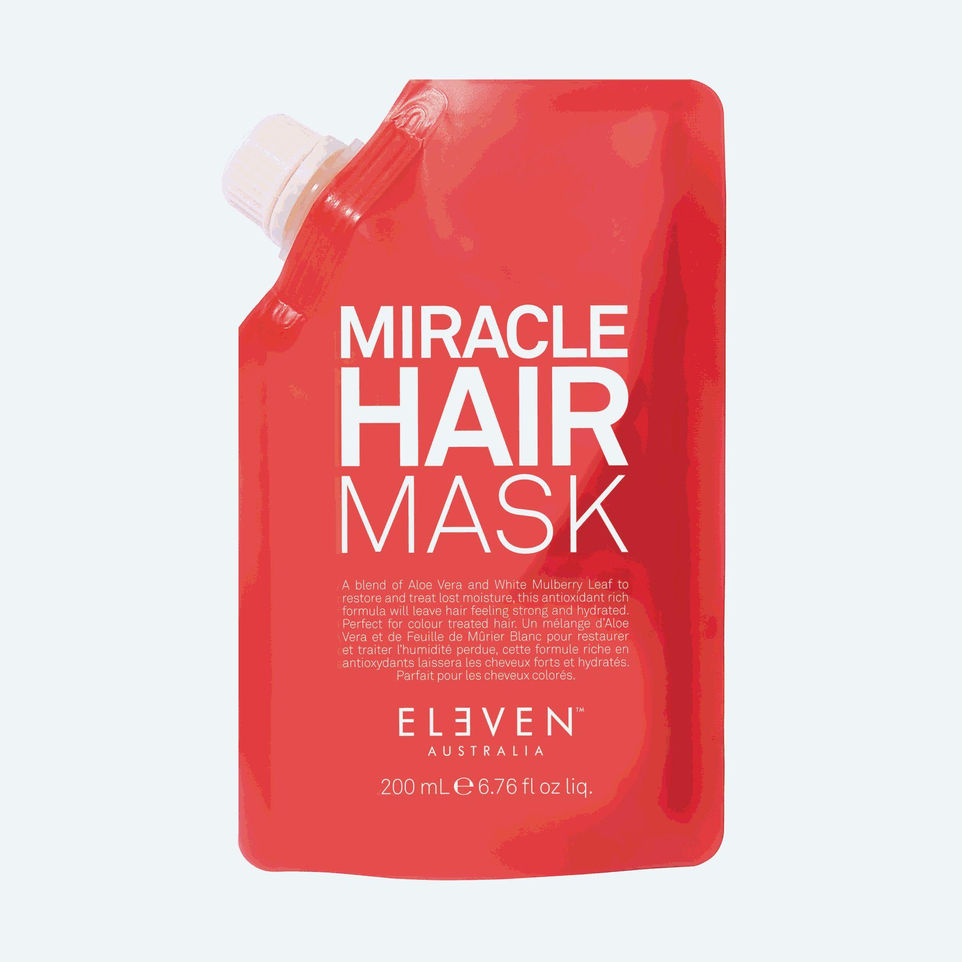 To nowa maska ELEVEN Australia MIRACLE HAIR MASK, która w ciągu kilku minut może przywrócić włosom nawilżenie, miękkość, siłę, objętość, a nawet blask. Skierowana szczególnie do osób borykających się z problemem suchych i matowych włosów. Maska nadaje się do wszystkich rodzajów włosów, zwłaszcza do farbowanych lub poddawanych zabiegom chemicznym. Jest dostępna w saszetce nadającej się w 100% do recyklingu.