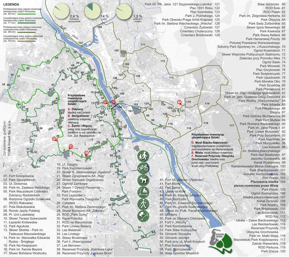 Jeden z członków stowarzyszenia Forum Rozwoju Warszawy wpadł na niezwykły pomysł stworzenia gigantycznej ścieżki dla pieszych i rowerów, która połączyłaby wszystkie tereny zielone w stolicy. Chociaż na pierwszy rzut oka pomysł może wydawać się nieco szalony, aktywiści pracujący przez ostatnie trzy lata nad koncepcją Zielone Szlaki Warszawy są przekonani, że jest możliwa do zrealizowania. Jak jednak podkreślają: "Realizacja przewidywana jest na ok. 10-15 lat – i może trwać jak proces planowania przestrzeni: nieustająco".