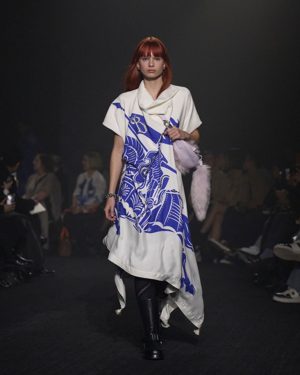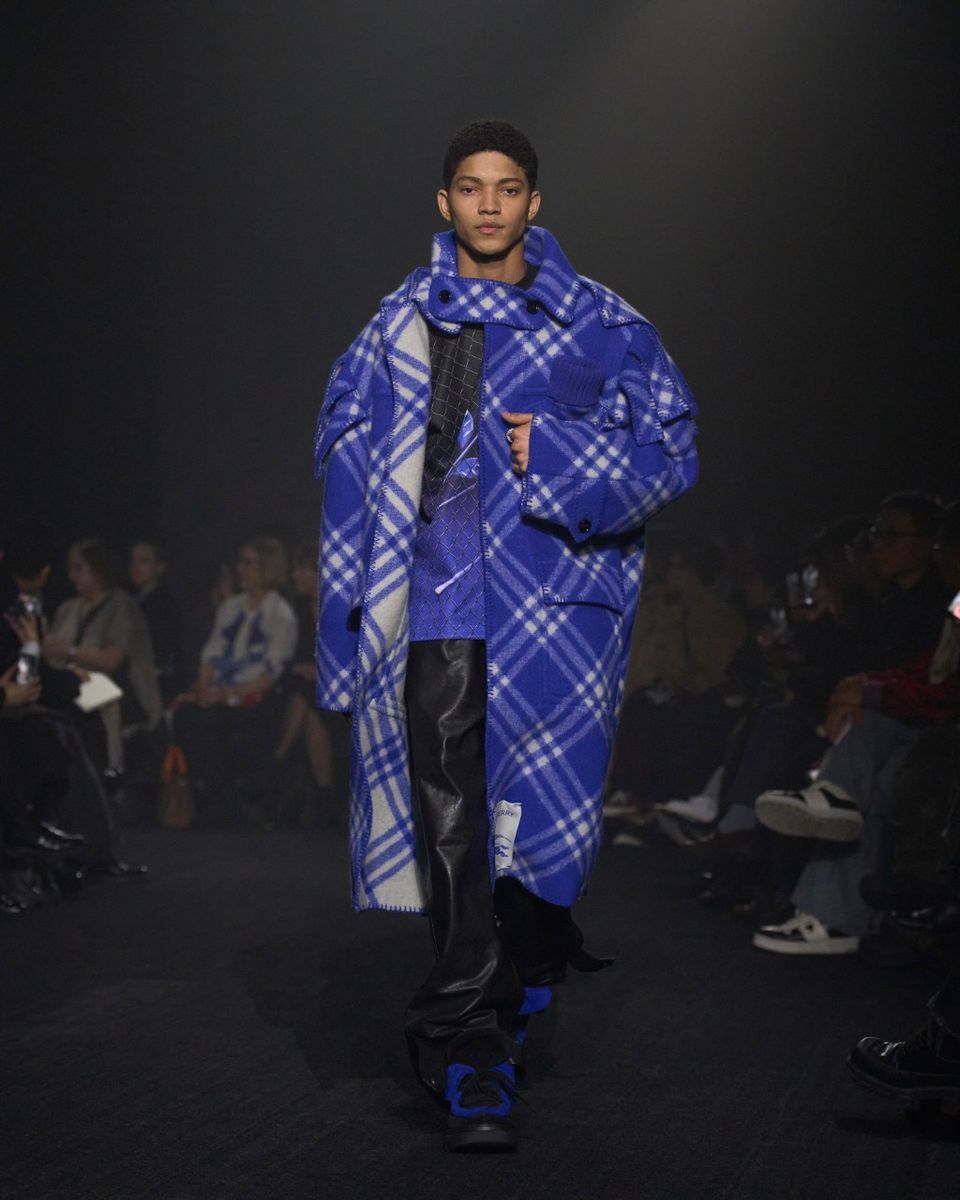 W całej kolekcji dostrzec można było nawiązania do brytyjskiej pogody – pojawiały się masywne kozaki a’la kalosze czy, oczywiście, płaszcze. Nawet ogólna przestrzeń wraz z widownią tworzyła pewien angielski environment – widzowie siedzieli na kocach z logiem Burberry, co przywodziło na myśl piknik, a ścieżka dźwiękowa, z początku pełna szumów, z czasem przerodziła się w swoistą playlistę brytyjskiego artysty Buriala, kojarzonego między innymi z UK garagem.